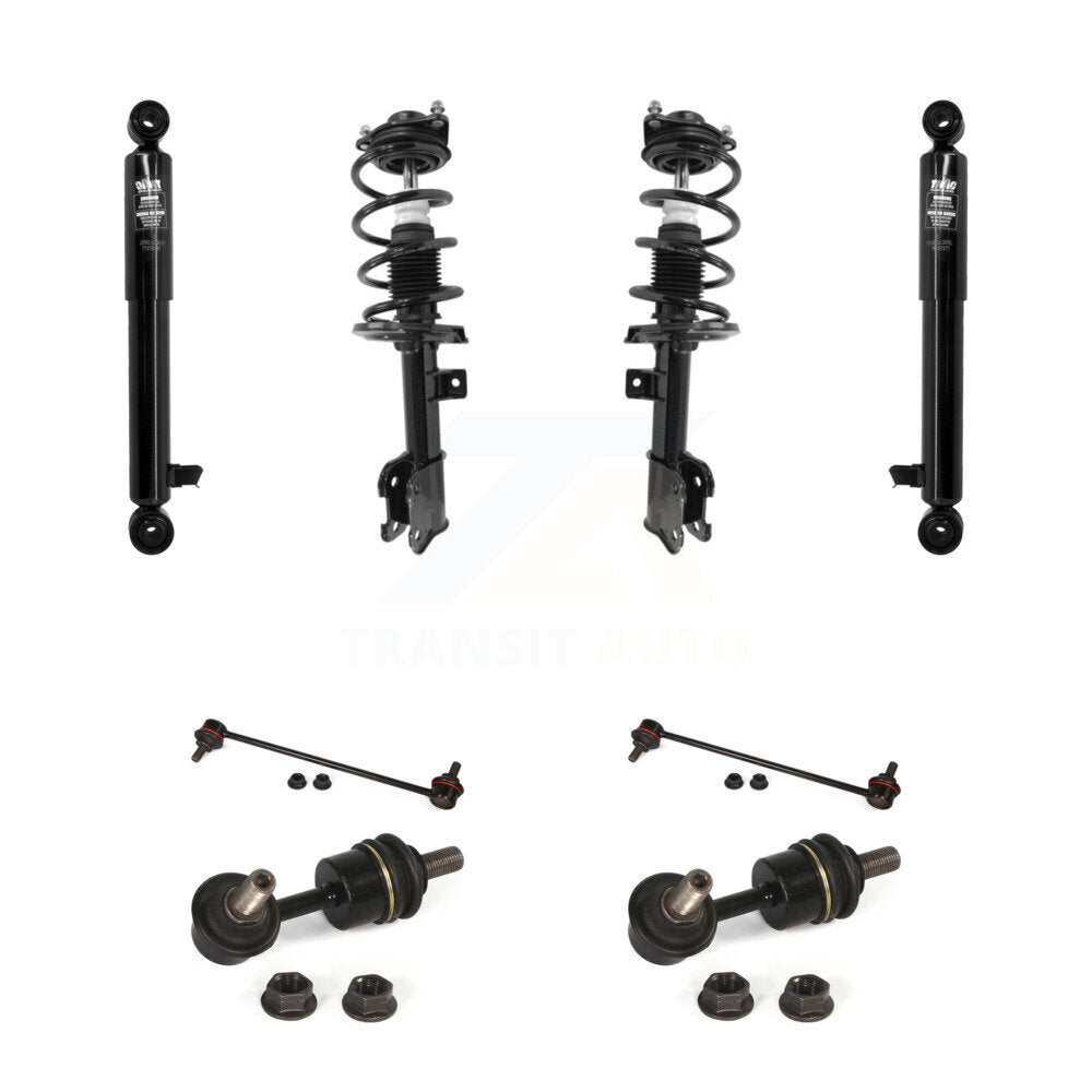 - Kit Includes: 2x Front Unity Automotive Suspension Strut and Coil Spring Assembly (Both Side) + 2x Front TOR Suspension Stabilizer Bar Link Kit (Both Side) + 2x Rear TMC Shock Absorber (Both Side) + 2x Rear TOR Suspension Stabilizer Bar Link Kit (Bot
