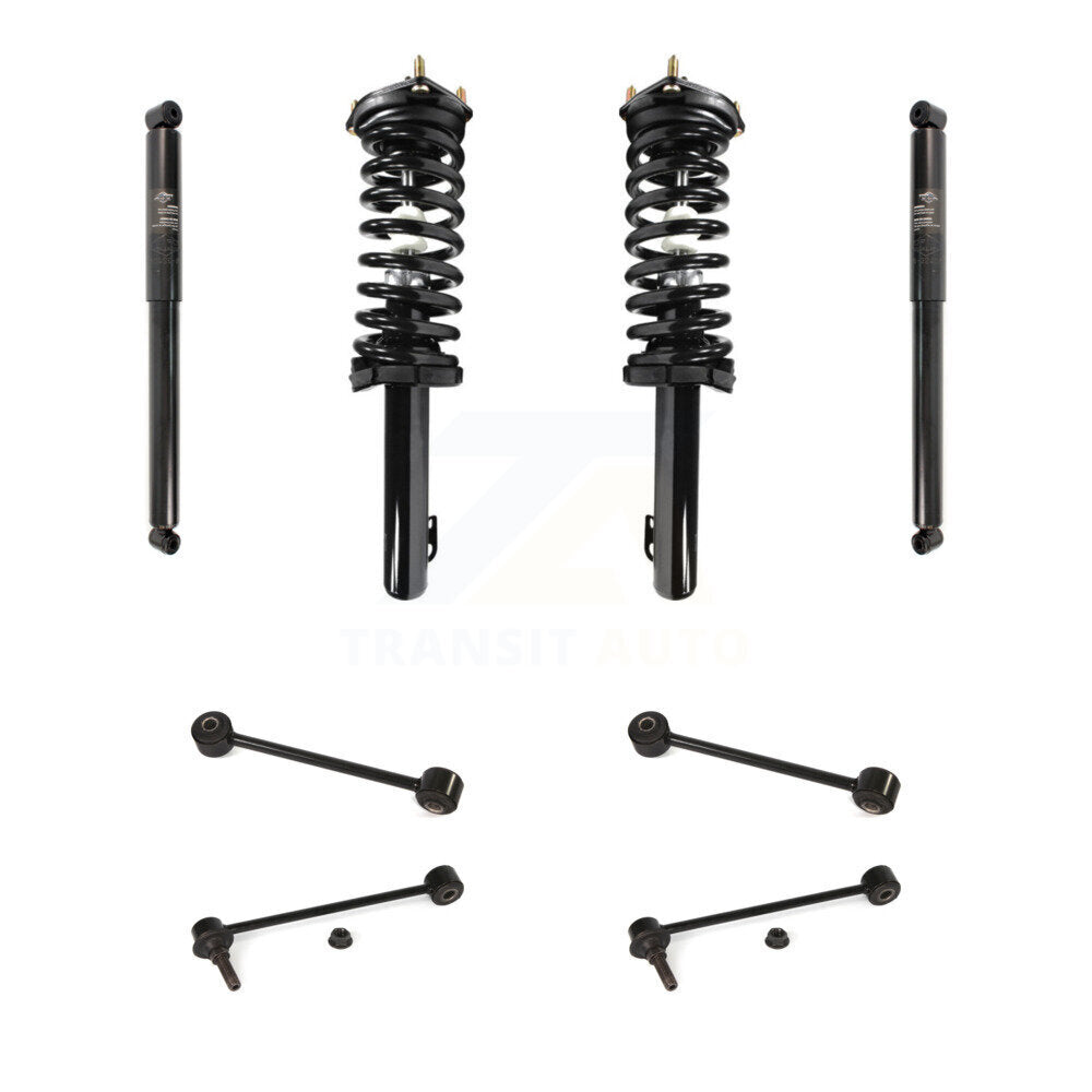 - Kit Includes: 2x Front Unity Automotive Suspension Strut and Coil Spring Assembly (Both Side) + 2x Front TOR Suspension Stabilizer Bar Link Kit (Both Side) + 2x Rear TMC Shock Absorber (Both Side) + 2x Rear TOR Suspension Stabilizer Bar Link Kit (Bot