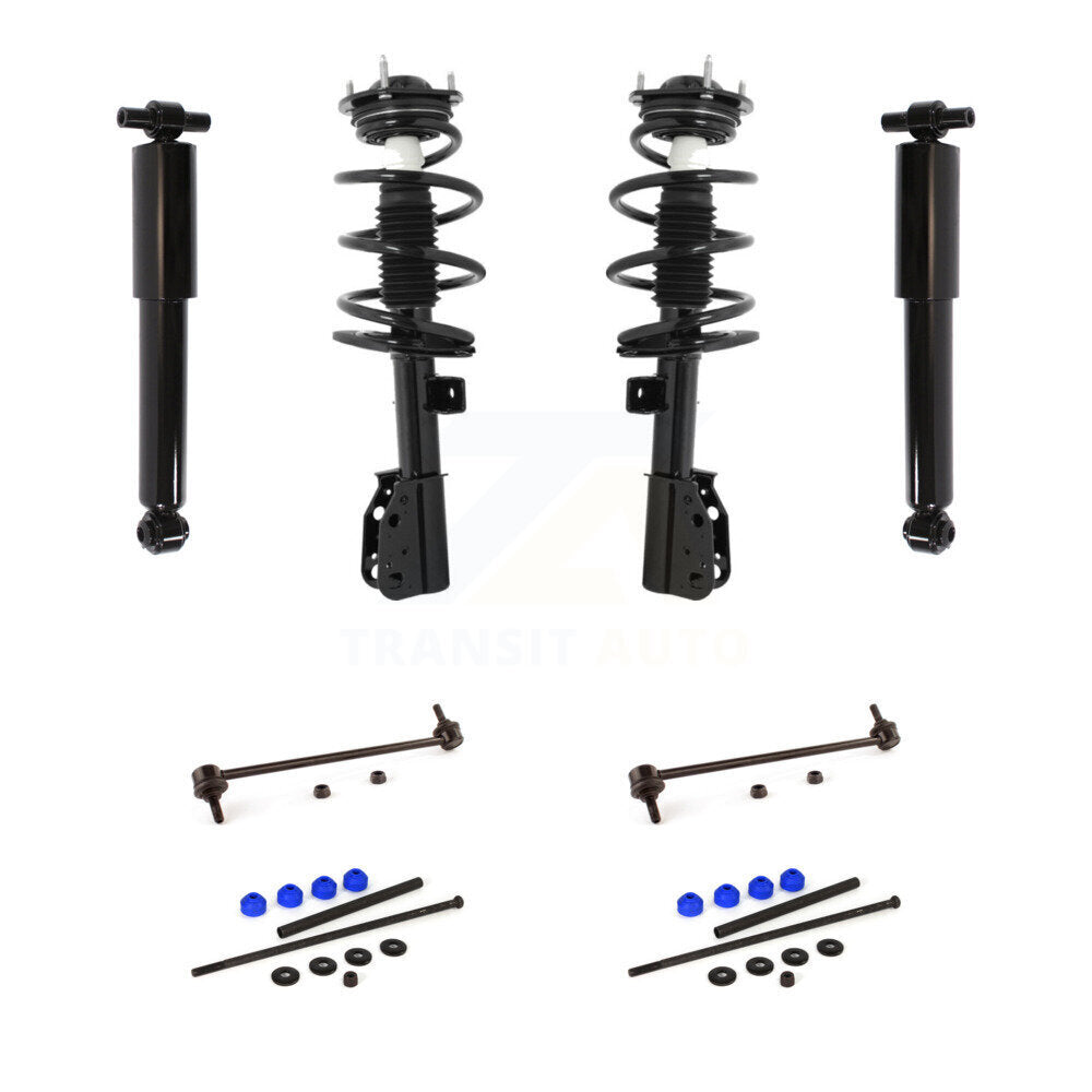 • Kit Includes: 2x Front Unity Automotive Suspension Strut and Coil Spring Assembly (Both Side) + 2x Front TOR Suspension Stabilizer Bar Link Kit (Both Side) + 2x Rear TMC Shock Absorber (Both Side) + 2x Rear TOR Suspension Stabilizer Bar Link Kit (Bot