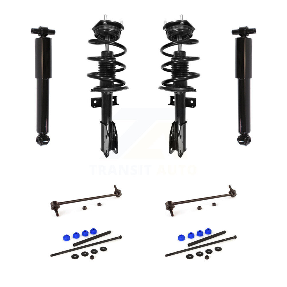 • Kit Includes: 2x Front Unity Automotive Suspension Strut and Coil Spring Assembly (Both Side) + 2x Front TOR Suspension Stabilizer Bar Link Kit (Both Side) + 2x Rear TMC Shock Absorber (Both Side) + 2x Rear TOR Suspension Stabilizer Bar Link Kit (Bot
