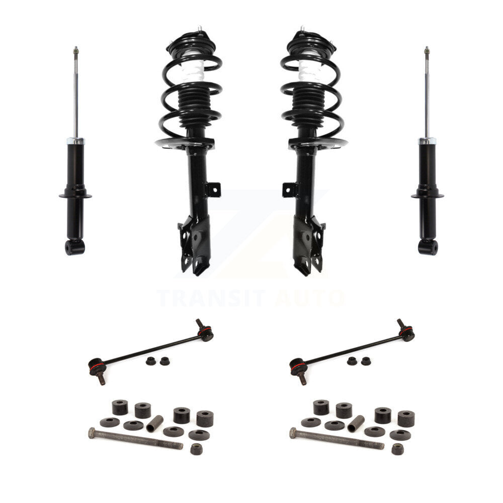 - Kit Includes: 2x Front Unity Automotive Suspension Strut and Coil Spring Assembly (Both Side) + 2x Front TOR Suspension Stabilizer Bar Link Kit (Both Side) + 2x Rear TMC Suspension Strut (Both Side) + 2x Rear TOR Suspension Stabilizer Bar Link Kit (B