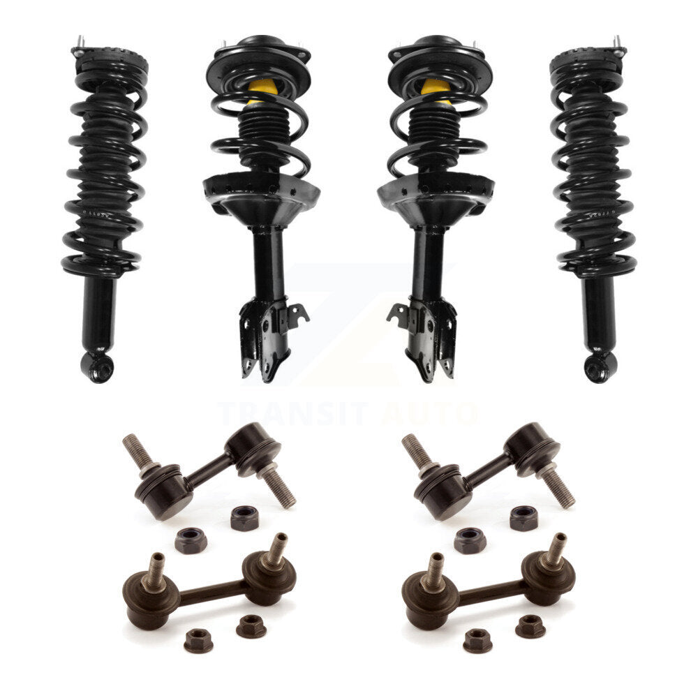 - Kit Includes: 2x Front Unity Automotive Suspension Strut and Coil Spring Assembly (Both Side) + 2x Front TOR Suspension Stabilizer Bar Link Kit (Both Side) + 2x Rear Unity Automotive Suspension Strut and Coil Spring Assembly (Both Side) + 2x Rear TOR