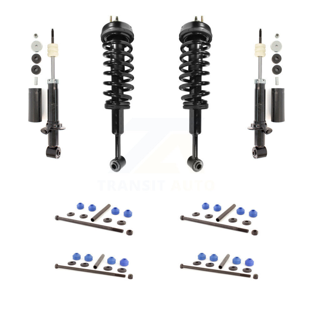 • Kit Includes: 2x Front Unity Automotive Suspension Strut and Coil Spring Assembly (Both Side) + 2x Front TOR Suspension Stabilizer Bar Link Kit (Both Side) + 2x Rear TMC Suspension Strut (Both Side) + 2x Rear TOR Suspension Stabilizer Bar Link Kit (B