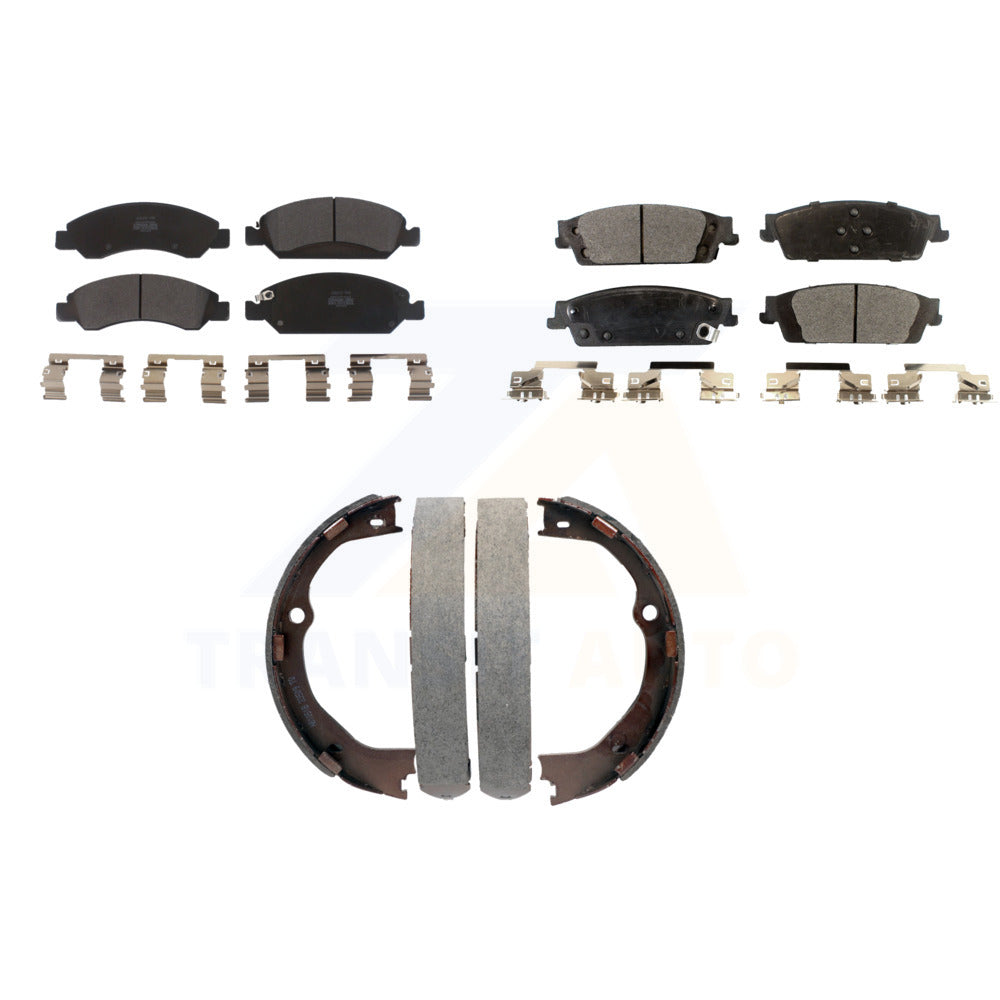 Front Rear Semi-Metallic Brake Pads Parking Shoe Kit For Chevrolet Silverado GMC