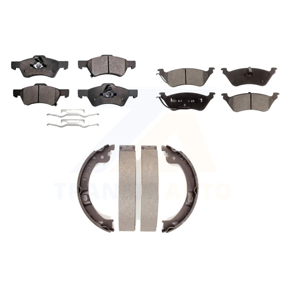 Front Rear Semi-Metallic Brake Pads & Parking Shoe Kit For Dodge Grand Caravan