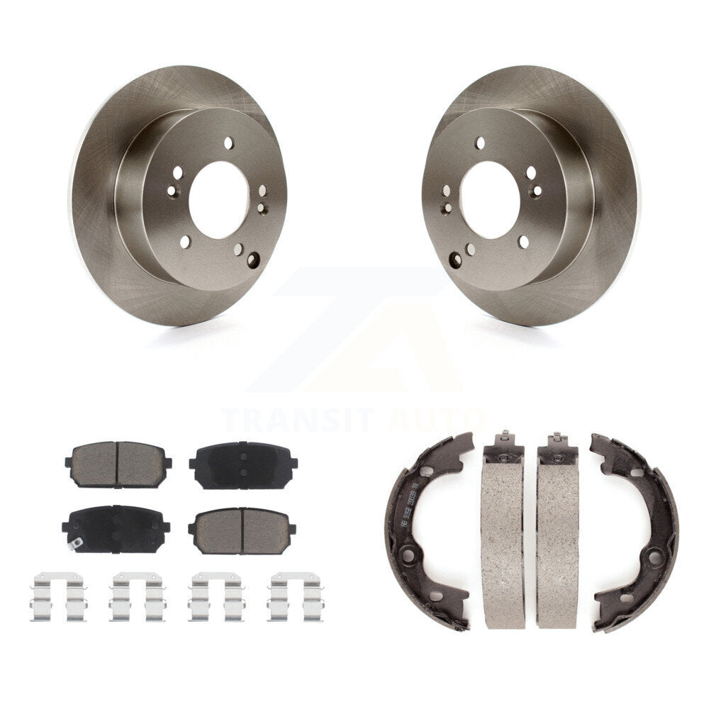 Rear Disc Rotors Ceramic Pads & Parking Brake Shoes Kit For 2007-2010 Kia Rondo