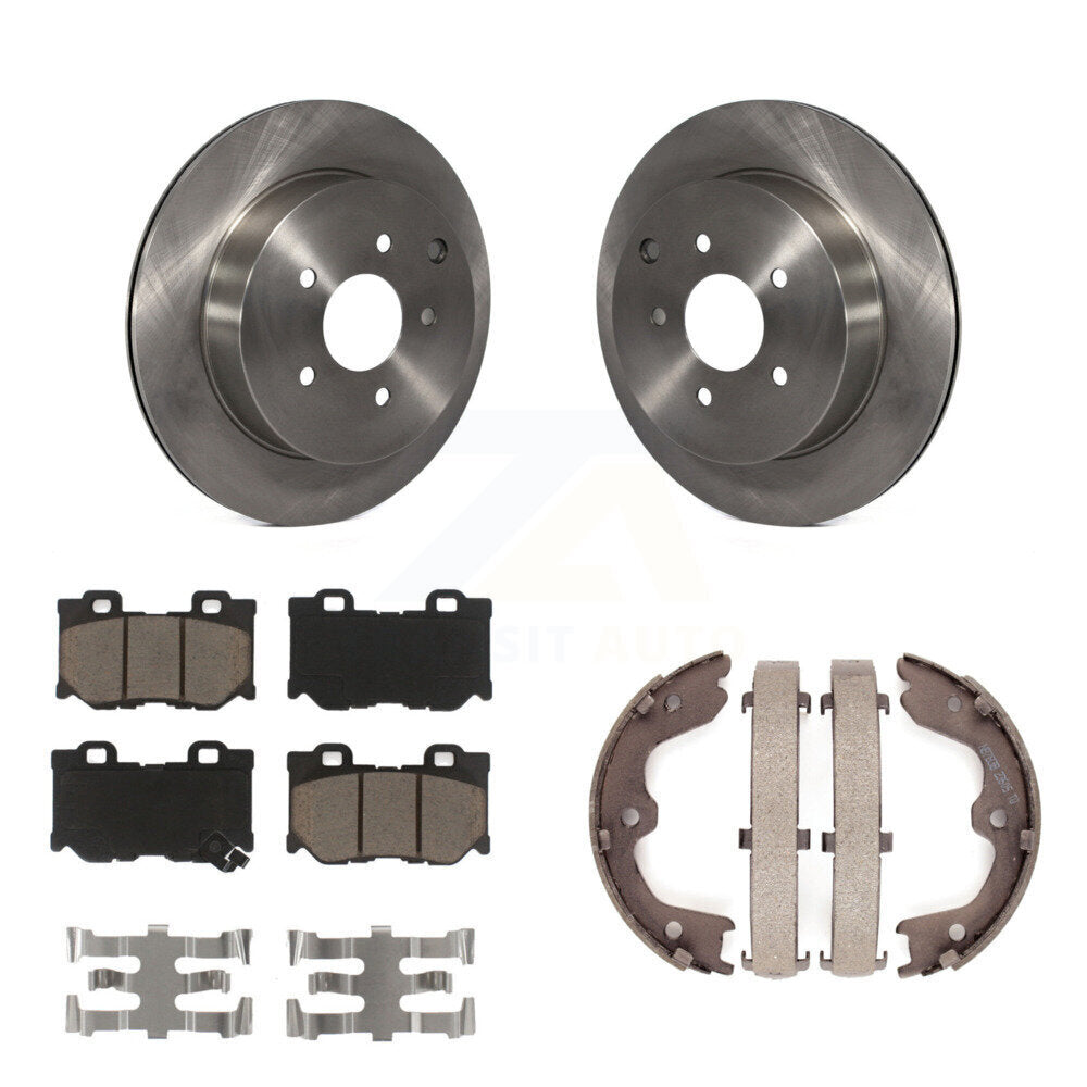 Rear Disc Rotors Ceramic Pads Parking Shoes Kit For INFINITI Q60 Premier Edition
