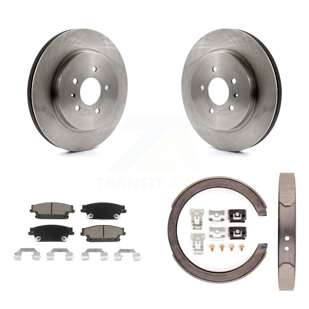 Rear Disc Rotors Ceramic Pads And Parking Brake Shoes Kit For Cadillac CTS STS