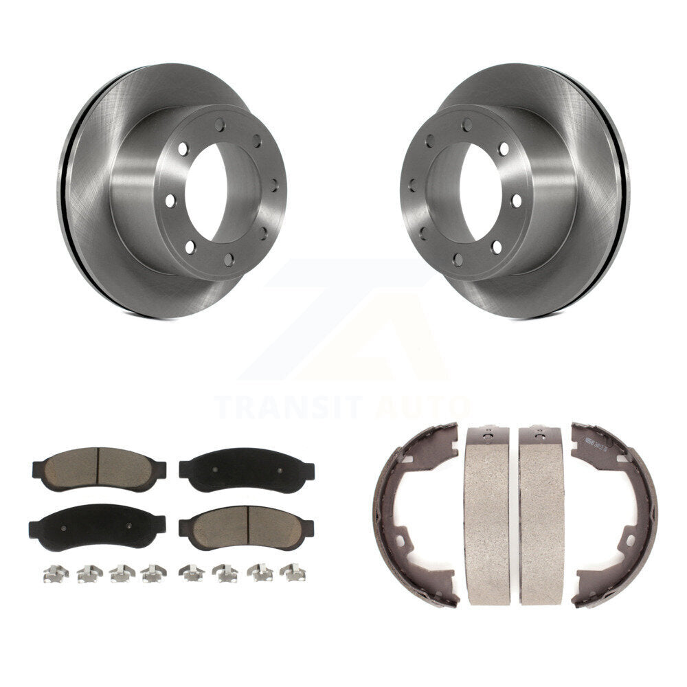 Rear Disc Rotors Ceramic Pads Parking Shoes Kit For Ford F-250 Super Duty F-350