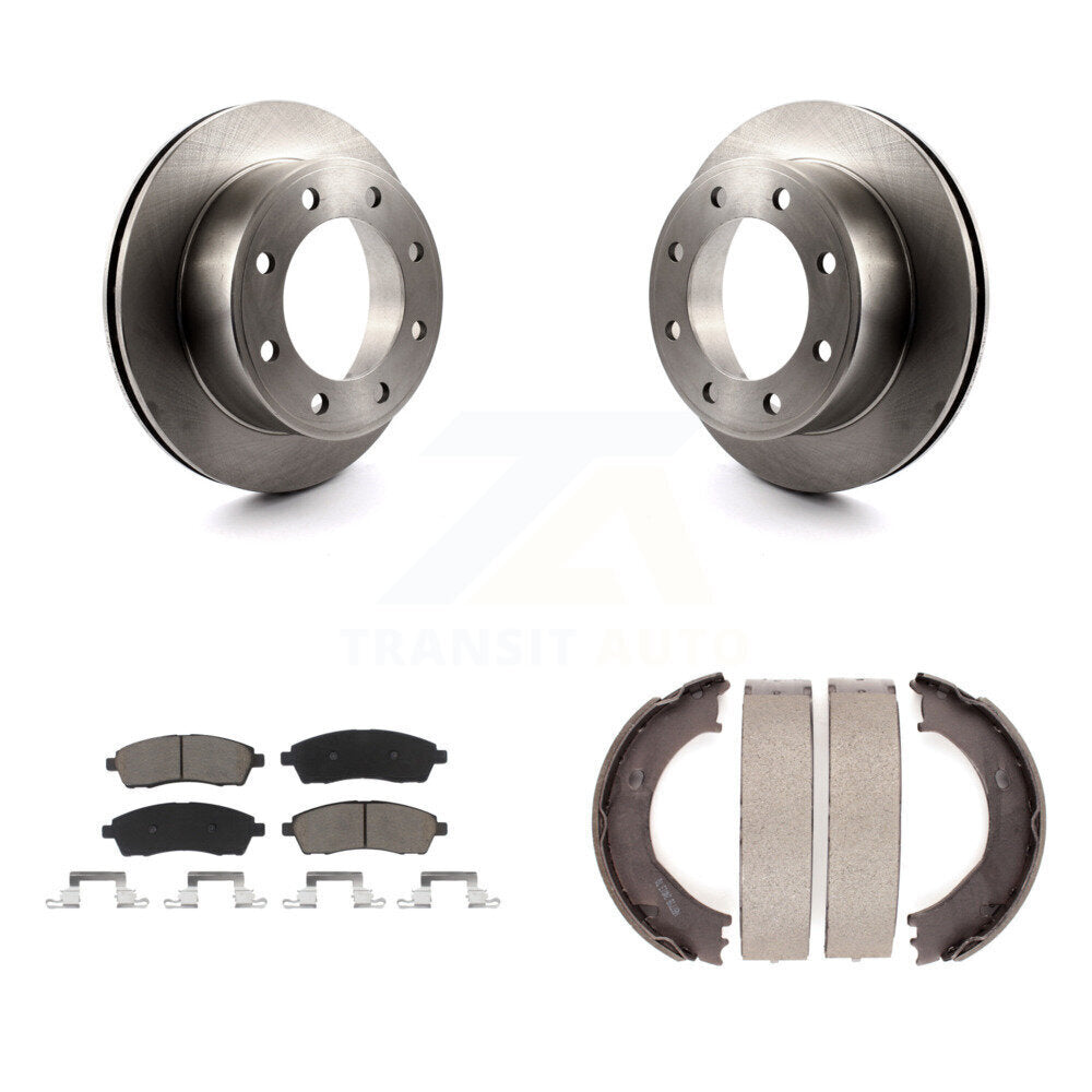 Rear Disc Rotors Ceramic Pads Parking Shoes Kit For Ford F-350 Super Duty F-250