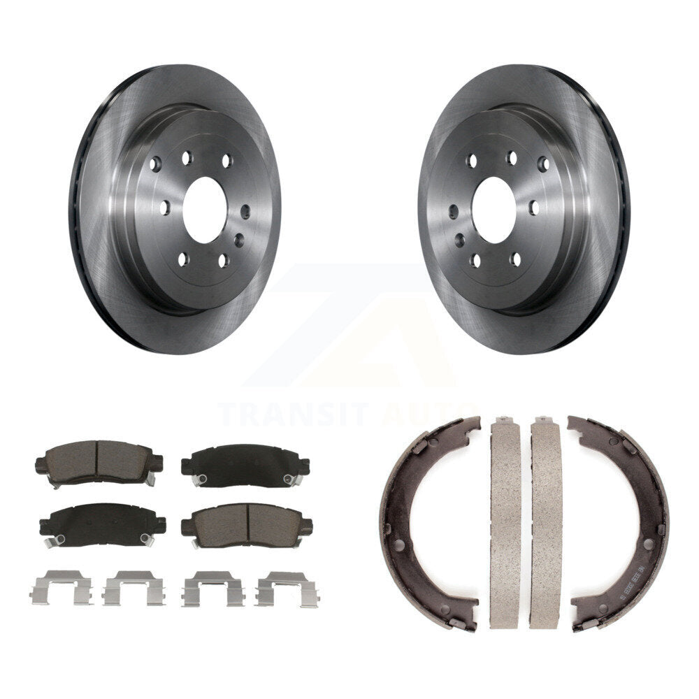 Rear Disc Rotors Ceramic Pads And Parking Shoes Kit For GMC Acadia Buick Enclave