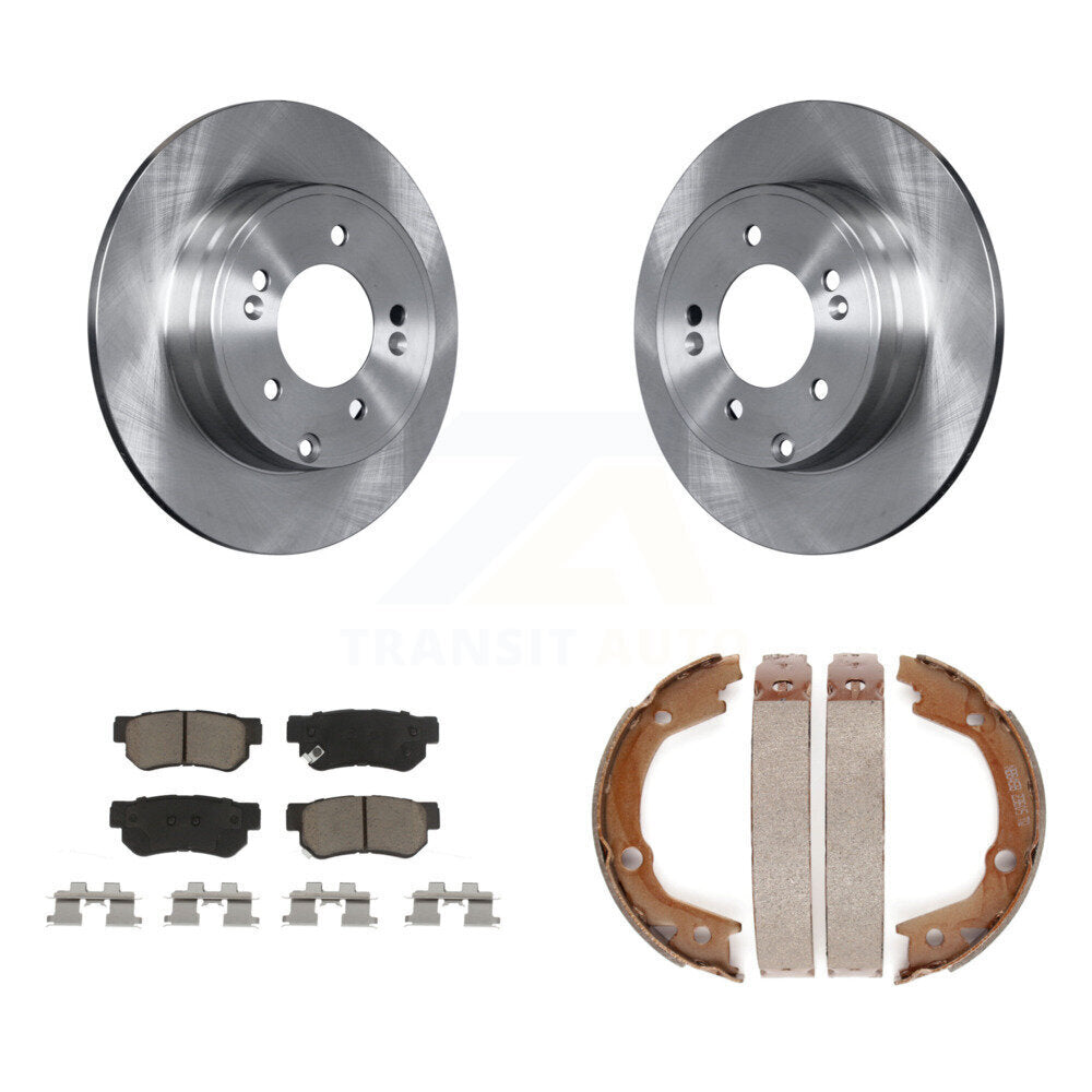 Rear Disc Rotors Ceramic Pads & Parking Brake Shoes Kit For Hyundai Sonata 3.3L