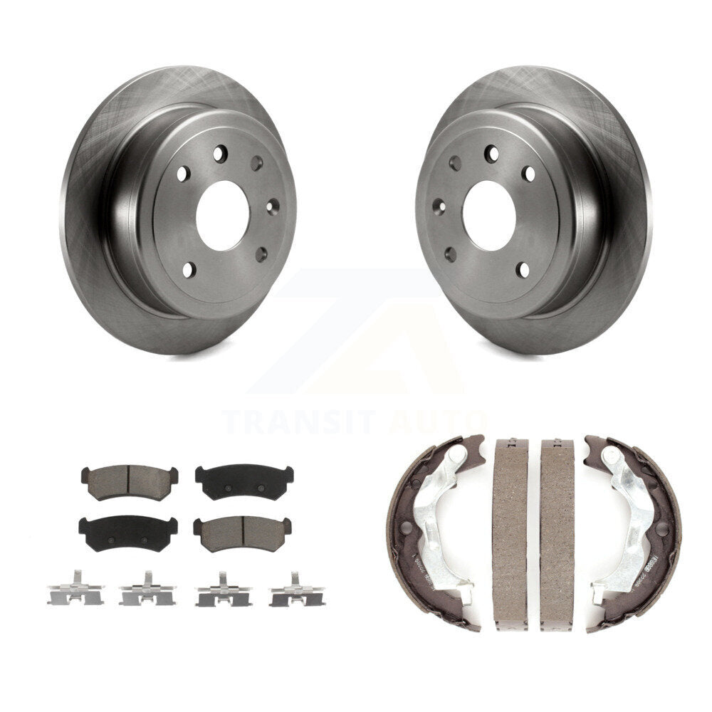 Rear Disc Rotors Ceramic Pads & Parking Brake Shoes Kit For Suzuki Forenza Reno