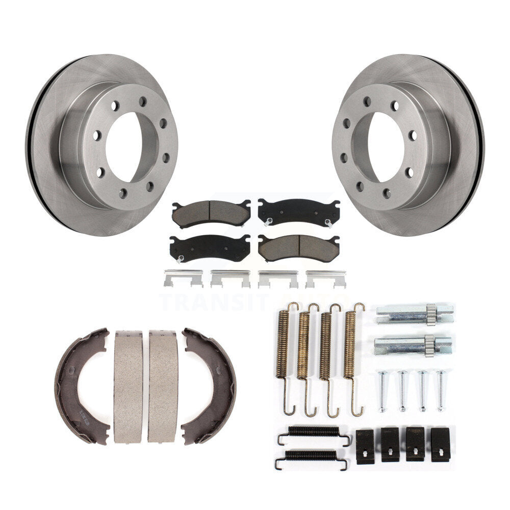 Rear Disc Rotors Ceramic Pads Parking Shoes And Hardware Kit For GMC Sierra 3500