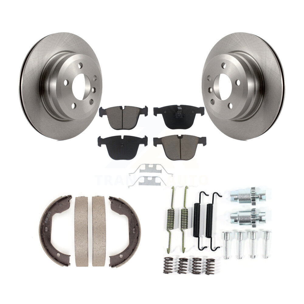 Rear Disc Rotors Ceramic Pads Parking Shoes Hardware Kit For 09 BMW X6 xDrive35i