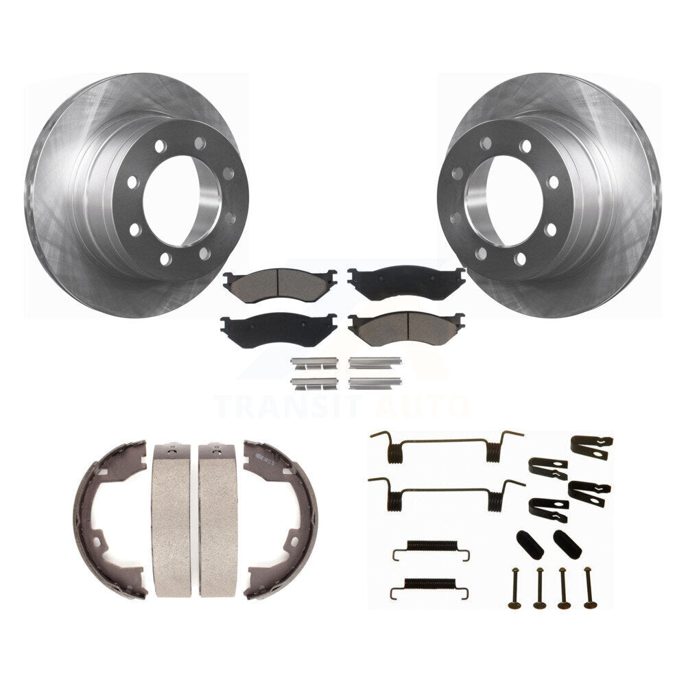 Rear Disc Rotors Ceramic Pads Parking Shoes Hardware Kit For Dodge Ram 1500 3500
