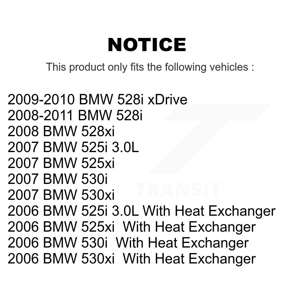 | 2006 | BMW | 530i | All | With Heat Exchanger | All | All | All | All |