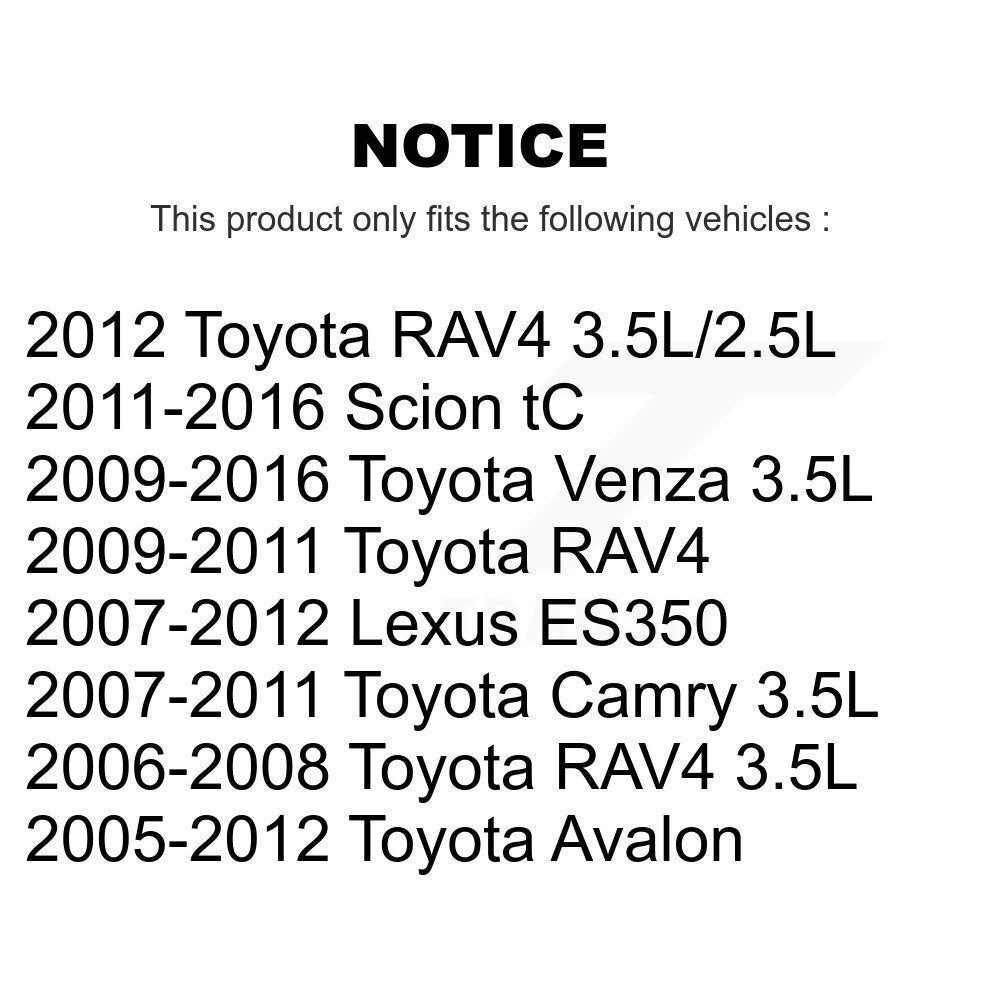 2005 2006 2007 2008 2009 2010 2011 2012 2013 2014 2015 2016 Lexus Scion Toyota TRD Avalon Camry ES350 RAV4 tC Venza 3.5L 2.5L