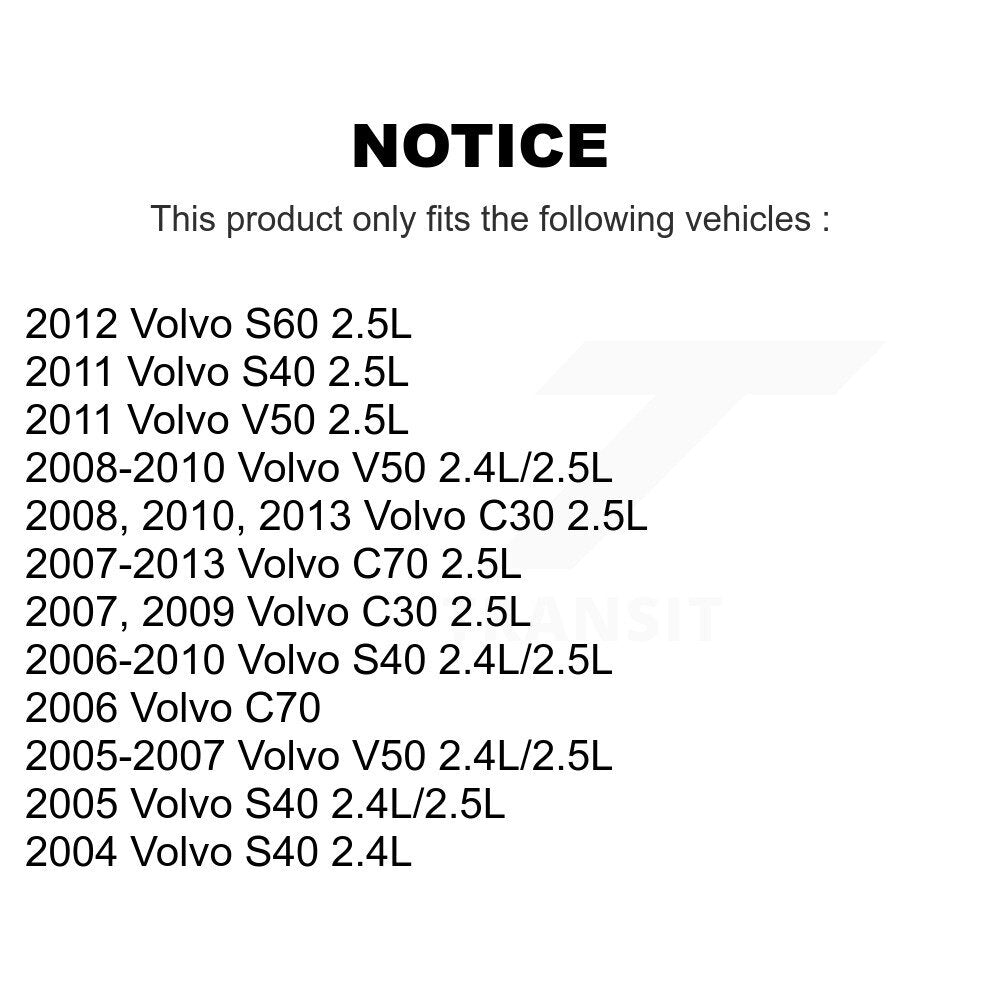 | 2013 | Volvo | C70 | All | None | All | All | 2.5 | All |