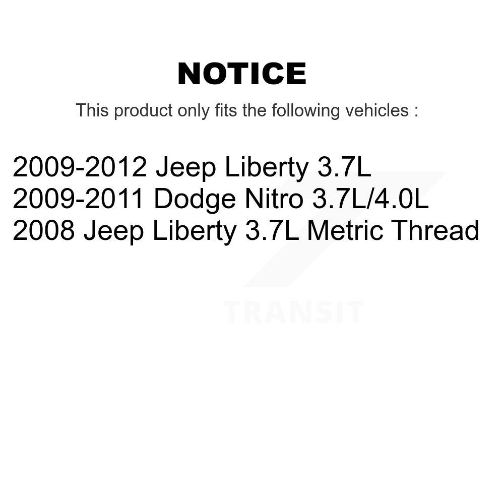 | 2008 | Jeep | Liberty | All | Metric Thread | All | All | 3.7 | All |