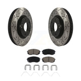 [Front] 2017-2019 Kia Soul EV Performance Drilled & Slotted Brake Rotor & Ceramic Pads Kit For Max Braking