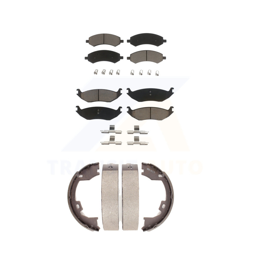 Front Rear Ceramic Brake Pads And Parking Shoes Kit For Dodge Ram 1500