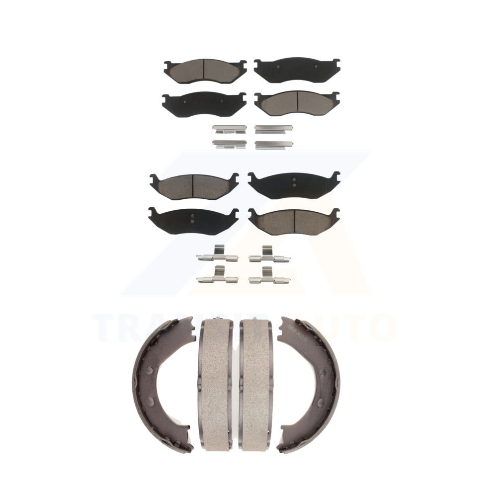 Front Rear Ceramic Brake Pads And Parking Shoes Kit For Dodge Durango Ram 1500