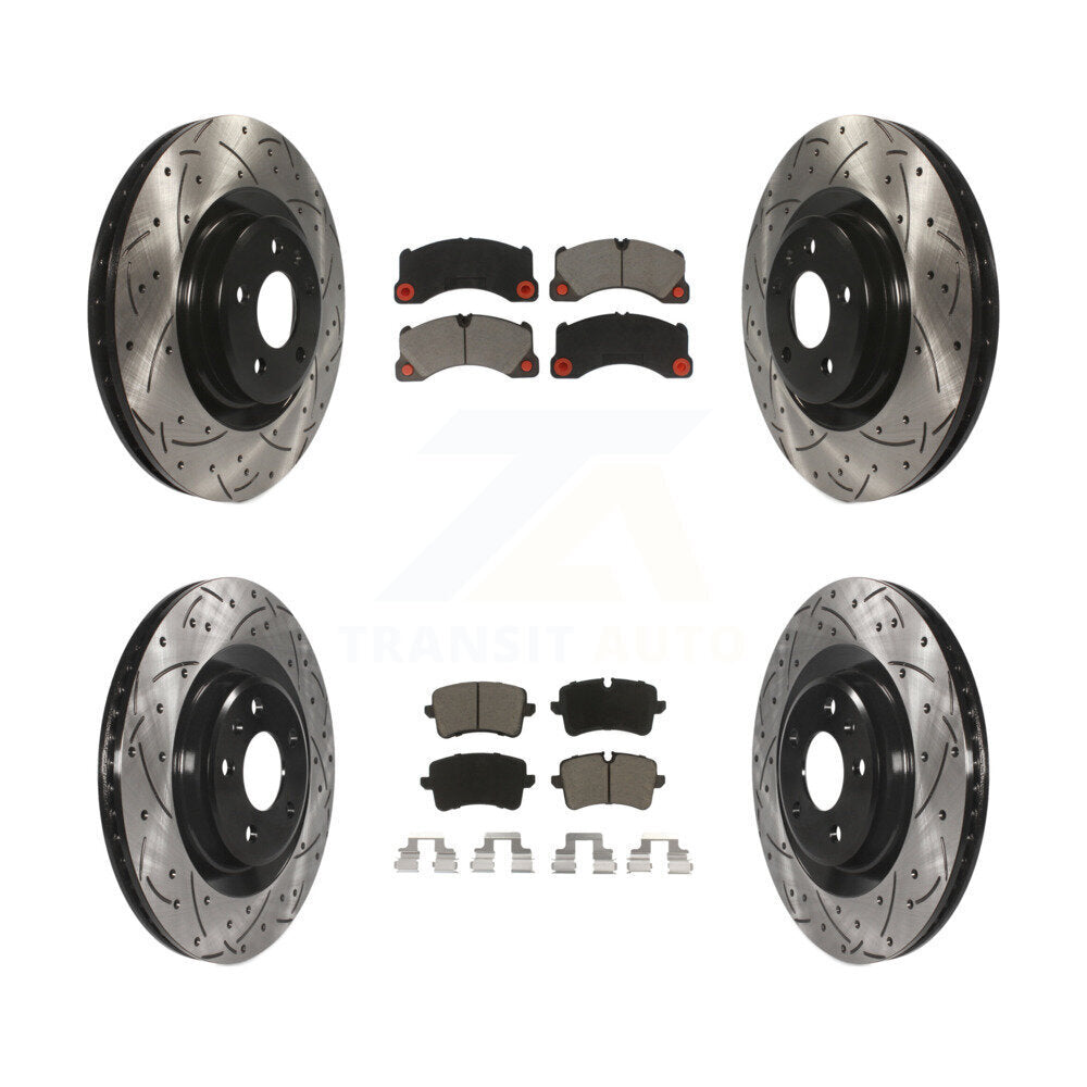[Front+Rear] 2017 Porsche Macan Base Performance Drilled & Slotted Brake Rotor & Ceramic Pads Kit For Max Braking