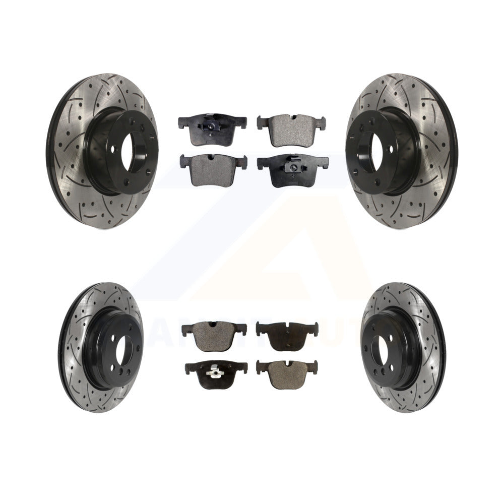 Front Rear Coated Drilled Slotted Disc Brake Rotors Ceramic Pad Kit For BMW 330i
