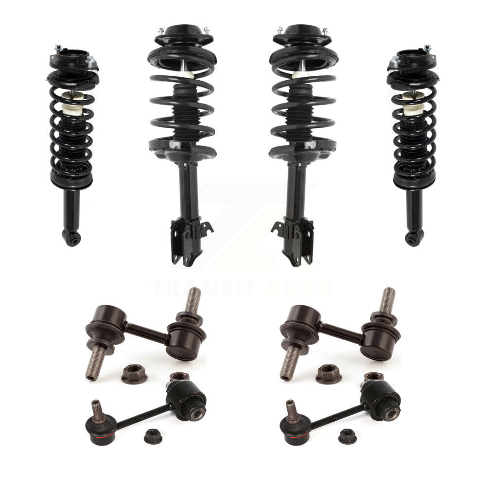 • Kit Includes: 2x Front Unity Automotive Suspension Strut and Coil Spring Assembly (Both Side) + 2x Front TOR Suspension Stabilizer Bar Link Kit (Both Side) + 2x Rear Unity Automotive Suspension Strut and Coil Spring Assembly (Both Side) + 2x Rear TOR
