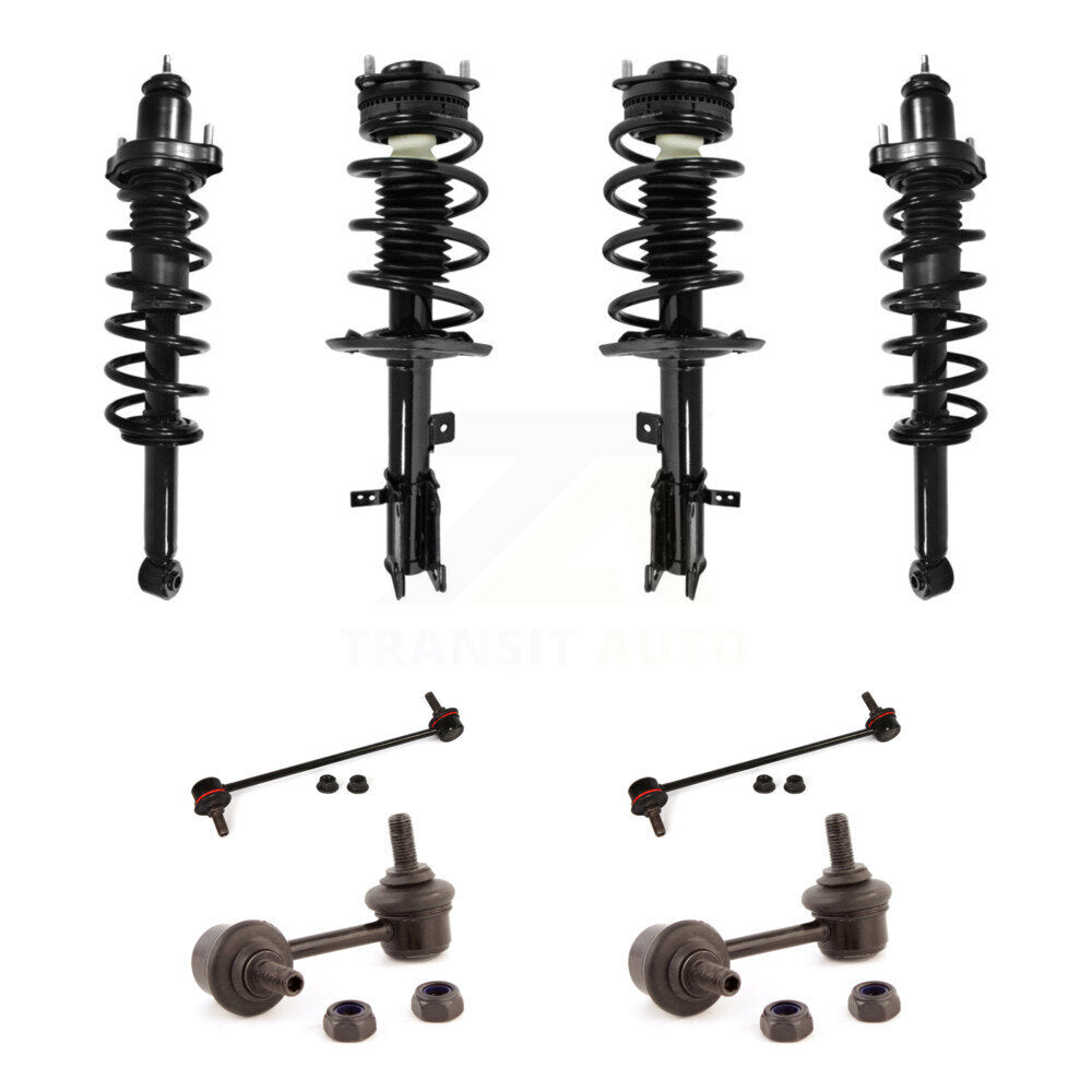 • Kit Includes: 2x Front Unity Automotive Suspension Strut and Coil Spring Assembly (Both Side) + 2x Front TOR Suspension Stabilizer Bar Link Kit (Both Side) + 2x Rear Unity Automotive Suspension Strut and Coil Spring Assembly (Both Side) + 2x Rear TOR