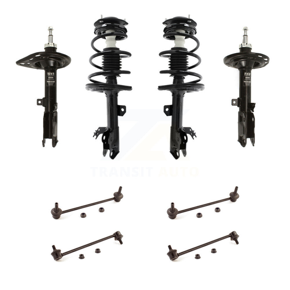 - Kit Includes: 2x Front Unity Automotive Suspension Strut and Coil Spring Assembly (Both Side) + 2x Front TOR Suspension Stabilizer Bar Link Kit (Both Side) + 2x Rear TMC Suspension Strut (Both Side) + 2x Rear TOR Suspension Stabilizer Bar Link Kit (B