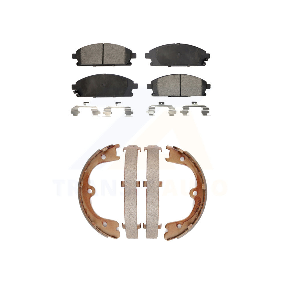 Front Rear Semi-Metallic Brake Pads Parking Shoe Kit For 04-05 Nissan Quest