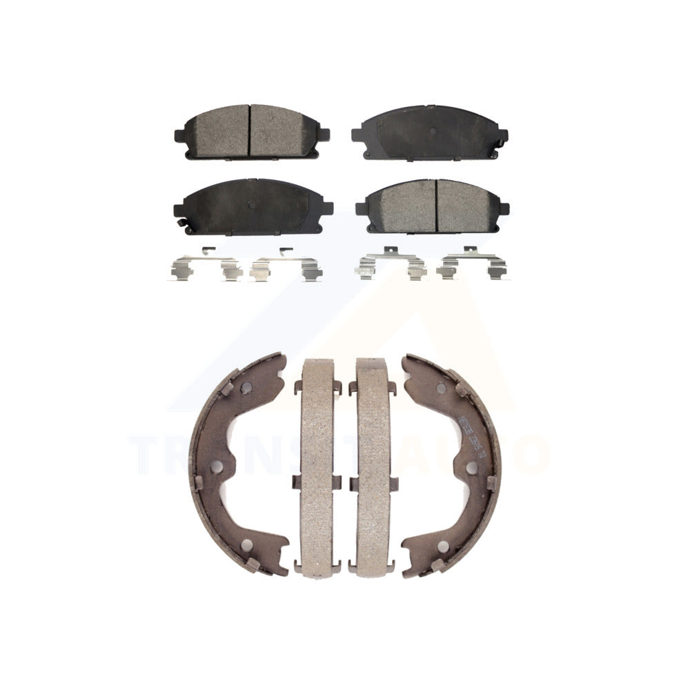 Front Rear Semi-Metallic Brake Pads Parking Shoe Kit For 06-07 Nissan Quest