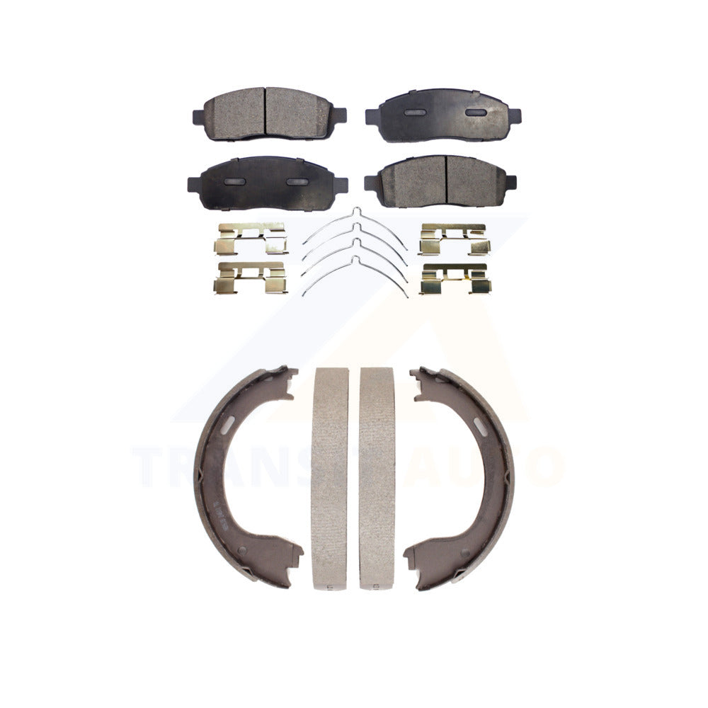 Front Rear Semi-Metallic Brake Pads & Parking Shoes Kit For 2009 Ford F-150