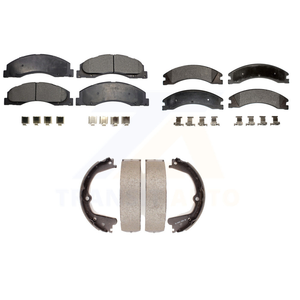 Front Rear Semi-Metallic Brake Pads & Parking Shoe Kit For Ford E-450 Super Duty