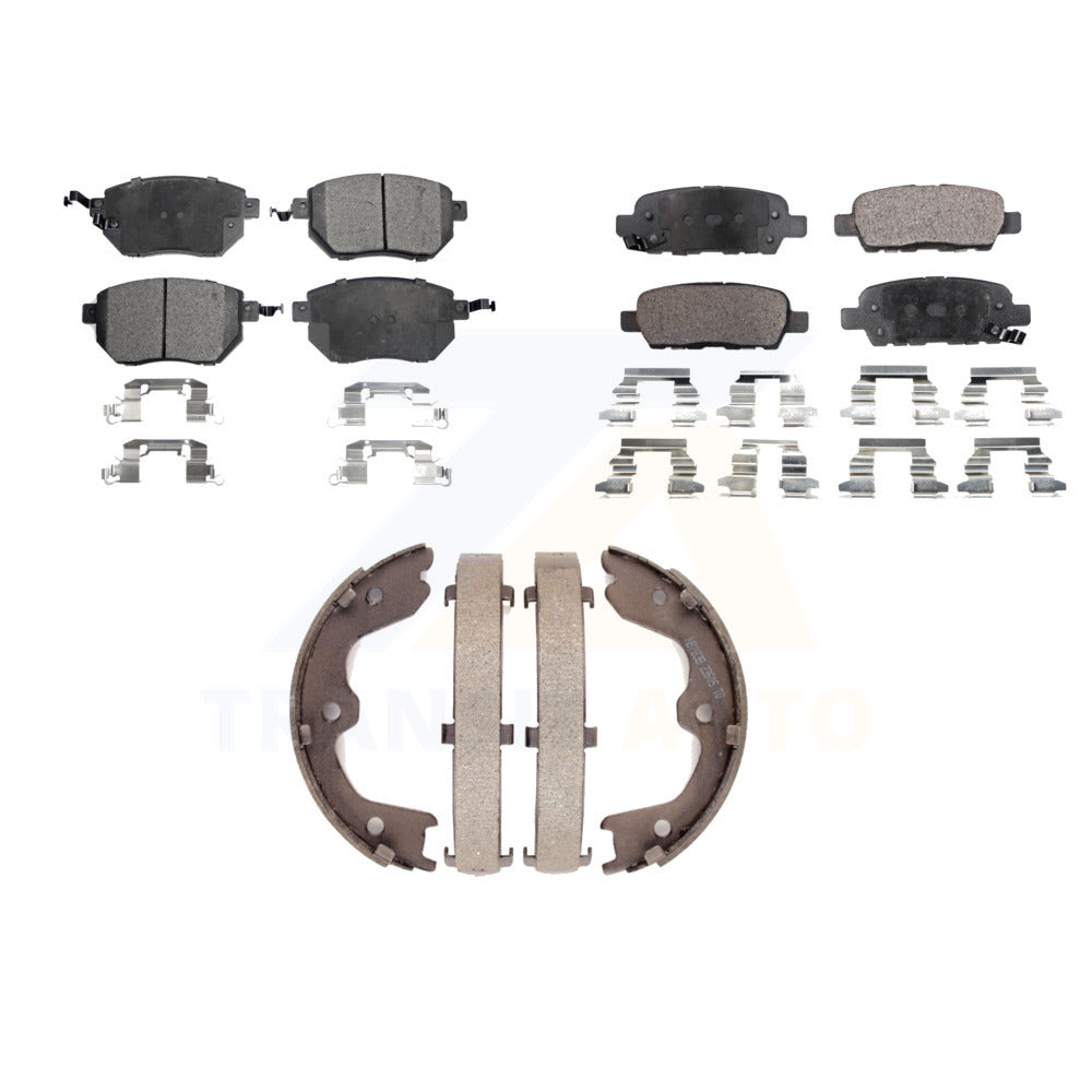 Front Rear Semi-Metallic Brake Pads & Parking Shoes Kit For Nissan Altima Maxima