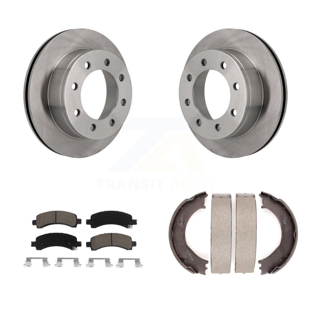 Rear Disc Rotors Ceramic Pads & Parking Shoes Kit For Chevrolet GMC Express 3500