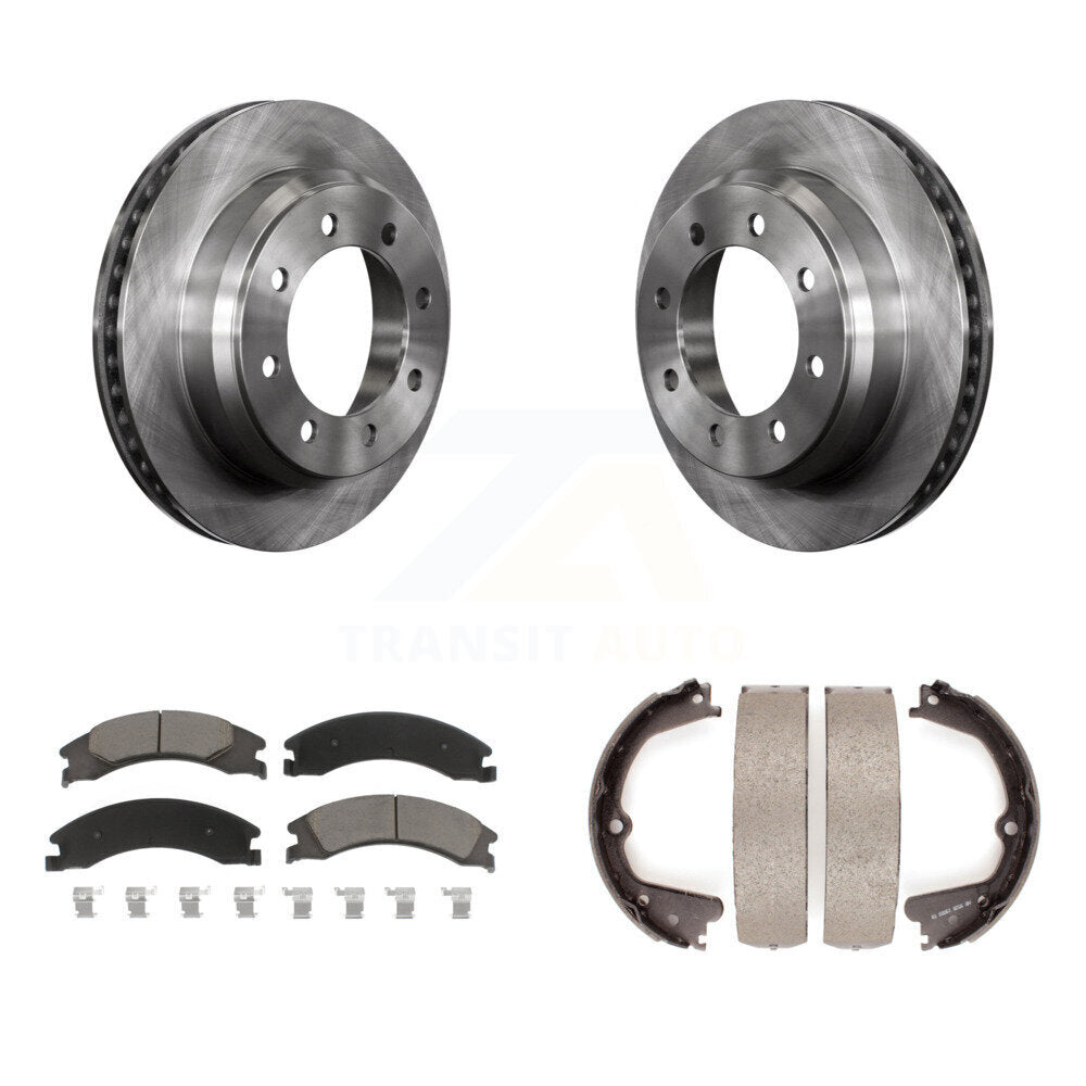 Rear Disc Rotors Ceramic Pads Parking Shoes Kit For Ford E-350 Super Duty E-250