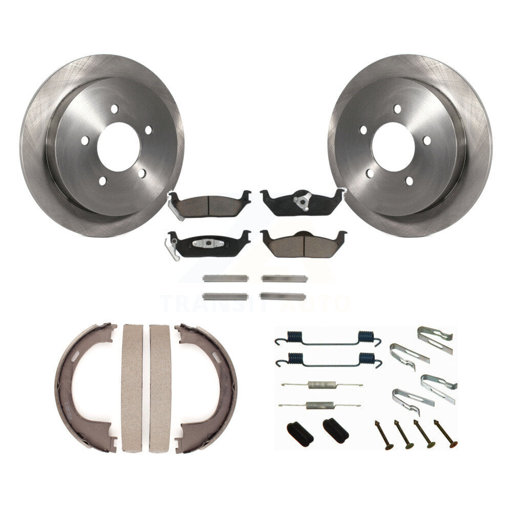Rear Disc Rotors Ceramic Pads Parking Brake Shoes & Hardware Kit For Ford F-150